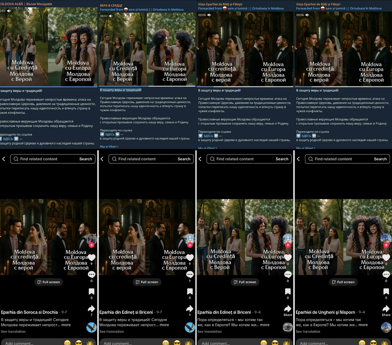 In Moldova, where the Orthodox Church remains largely under the jurisdiction of the Moscow Patriarchate, Russia-aligned networks exploited religious beliefs to influence the 2025 parliamentary vote. A cross-platform ecosystem on Facebook, YouTube, Telegram, and TikTok, which initially appeared to share generic religious content, was in fact targeting Moldovan voters with propaganda and electoral mobilization messages.