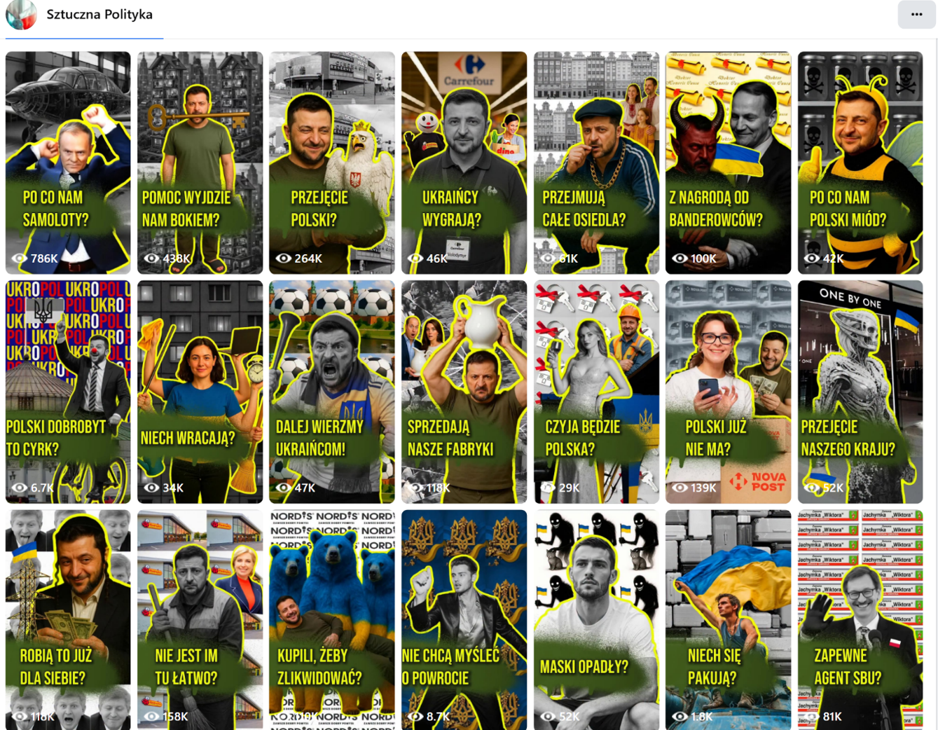 Screenshot of Sztuczna Polityka’s AI-generated reels targeting Ukrainians. (Source: Sztuczna Polityka/archive)