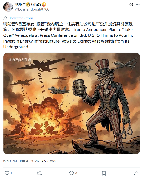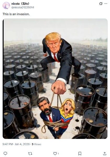 The top question on the Chinese question and answer site Zhihu (similar to Quora) asked, “Trump announced the arrest of the Venezuelan president and his wife, and the US Attorney General stated that they have been indicted in the United States. What does this mean? Why can the US arrest people so easily?” The page had been viewed over 43 million times at the time of writing. The top two answers highlighted the difficulties of China’s future cooperation with smaller countries and noted that regime change in Venezuela could result in a pro-US government.