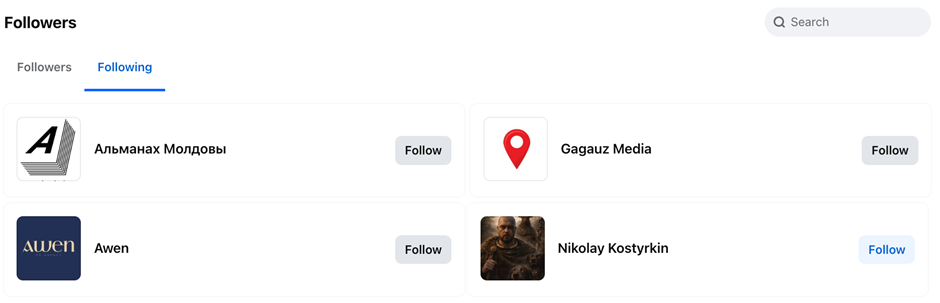 The Facebook page Media Pulse Moldova page follows Gagauznews editor-in-chief Nikolay Kostyrkin and the Facebook page “Gagauz Media,” reinforcing the links.